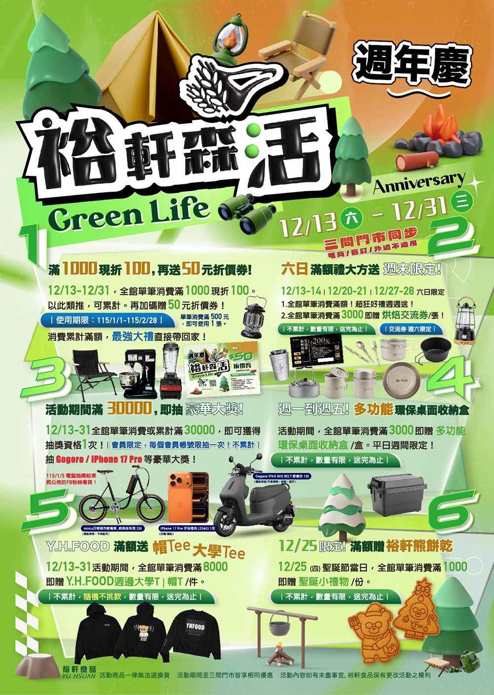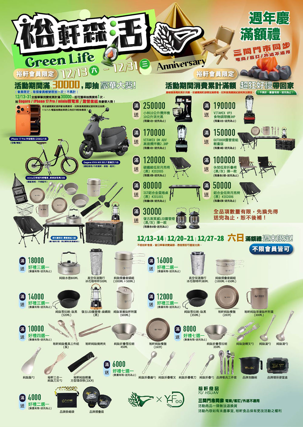 【裕軒森活Green Life|週年慶】三間門市限定同步
