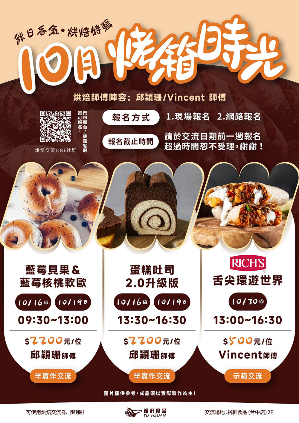 交流地點:裕軒食品烘焙交流場地(台中店2F)