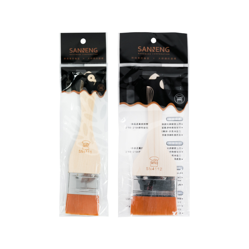 SN4120尺寸:235x50x35mm SN4121尺寸:235x75x35mm 手柄耐熱:-20~100℃ 選用上等羊毛製作質地柔韌,塑膠柄整體製作精良, 不易滑落、握感舒適、美觀耐用,採用掛孔設計易於收納。 適用於烘焙、烤肉、醬料等。