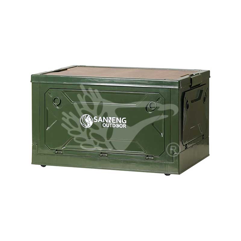 #301007 木桌板可側開摺疊收納箱-40L(軍綠)