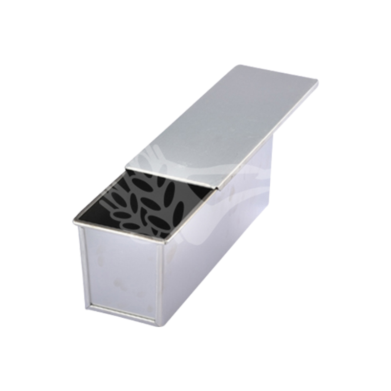 1500系列不沾 尺寸:內徑327x121x121mm 耐熱:<250℃ 高強度鋁合金材質輕、導熱快、輕巧耐用, 內層深色不沾塗層更聚熱、滑順易脫模、好清洗, 有效縮短烘烤時間、降低成本, 底部排氣孔設計可順利排出熱氣,避免土司塌陷。
