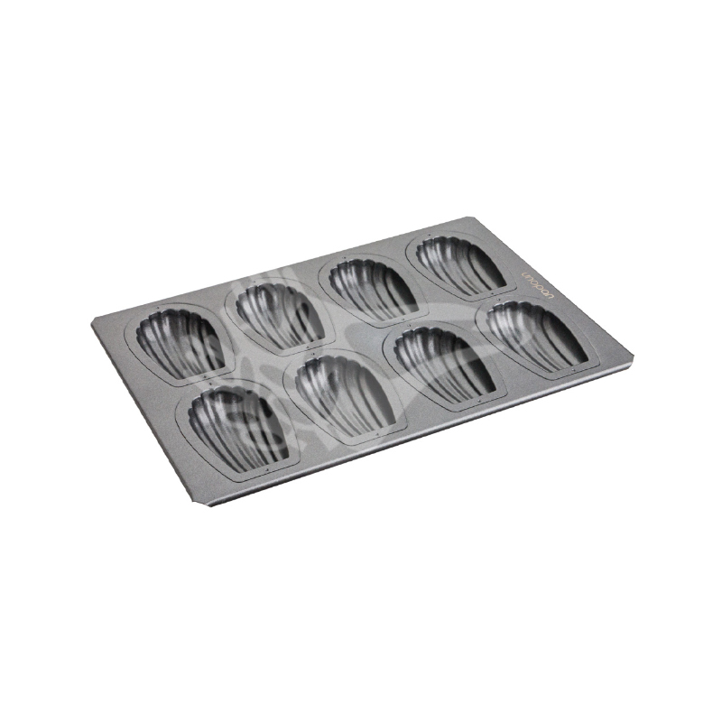 800系列不沾 尺寸:300x200x22mm 單格尺寸:77x47x16mm 耐熱:<230℃ 採用優質鍍鋁鋼板,烘烤受熱、上色均勻, 表面塗層矽利康不沾處理,方便脫模、不易沾黏、好清潔, 符合家用烤箱及專業烤箱尺寸(可於600x400mm烤盤上放置四片)。