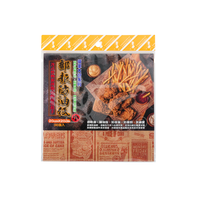 (小) BJ-8956尺寸:20*20cm (大) BJ-8963尺寸:24*30cm 耐熱:220℃ 微吸油、全隔油,可預防回滲餐具,也可充當擺盤紙。