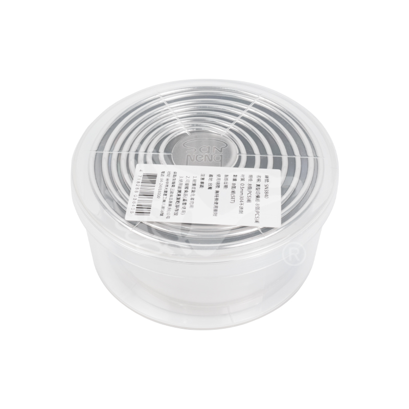 內容物: SN3841-尺寸:圓徑30x50mm SN3842-尺寸:圓徑40x50mm SN3844-尺寸:圓徑50x50mm SN3846-尺寸:圓徑60x50mm SN3848-尺寸:圓徑70x50mm SN3850-尺寸:圓徑80x50mm SN3852-尺寸:圓徑90x50mm SN3854-尺寸:圓徑100x50mm 表面處理:電解處理 採用優質304不銹鋼材質製作, 表面電解處理,具耐久性、易清潔、耐酸鹼性。