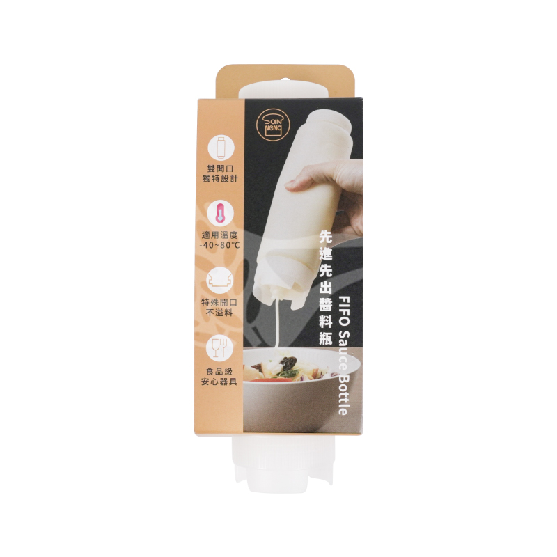 SN4667尺寸:圓徑62x高167mm SN4668尺寸:圓徑62x高208mm SN4669尺寸:圓徑70x高208mm SN4670尺寸:圓徑75x高208mm 耐熱:-40~80℃ 採用食品級PP無異味、輕巧方便使用, 獨特雙開口設計不溢料,兩端皆為寬口, 一端填充新醬料,另一端舊醬料則依然可優先使用, 進料口、出料口蓋子可共用。
