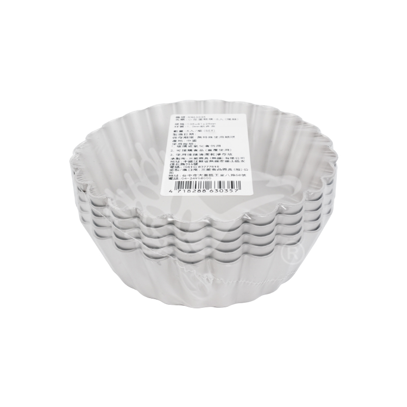 SN60315尺寸:94x83x35mm SN60335尺寸:105x90x37mm SN60345尺寸:110x94x38mm 採用優質鋁合金材質製作, 表面陽極處理,防氧化、易清洗,適用小蛋糕、蛋塔、布丁等。