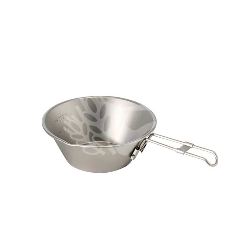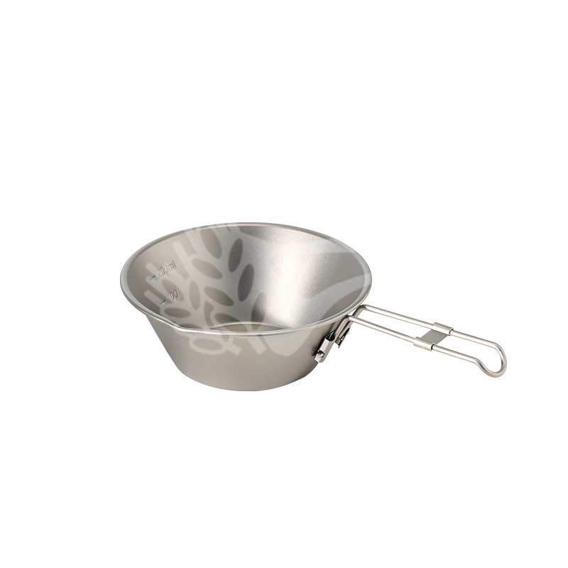 .規格:圓徑123x55mm。 .彎折式把手,可隨處吊掛。 .純鈦材質,清理方便,經久耐用。 .一杯到底!享受更多野外美味料理。