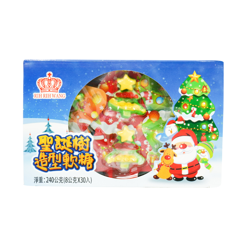 白砂糖、麥芽糖漿、明膠(牛皮)、D-山梨醇、麥芽糊精、檸檬酸、柑橘果膠、洋菜、DL-蘋果酸、香料、 食用色素(黄色五號、黃色四號、藍色一號、紅色四十號、一氧化鈦)、棕櫚蠟