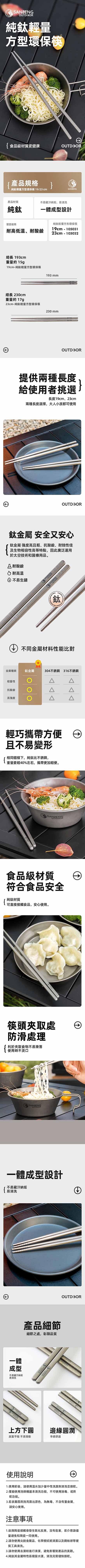 M241010 裕軒純鈦輕量方型環保筷(23cm)